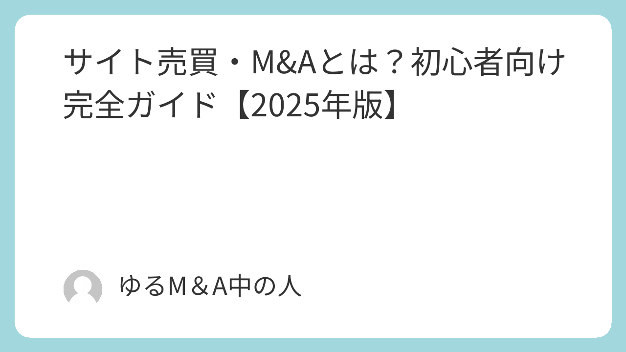 運営者の「ゆるM&Aラボ」は、本業でIT・Web領域を中心にM&Aアドバイザーとして活動しています。サイト売買に限らず、Webサービス・SaaS・アプリ・IT事業全般の売却や譲渡についてご相談いただけます。